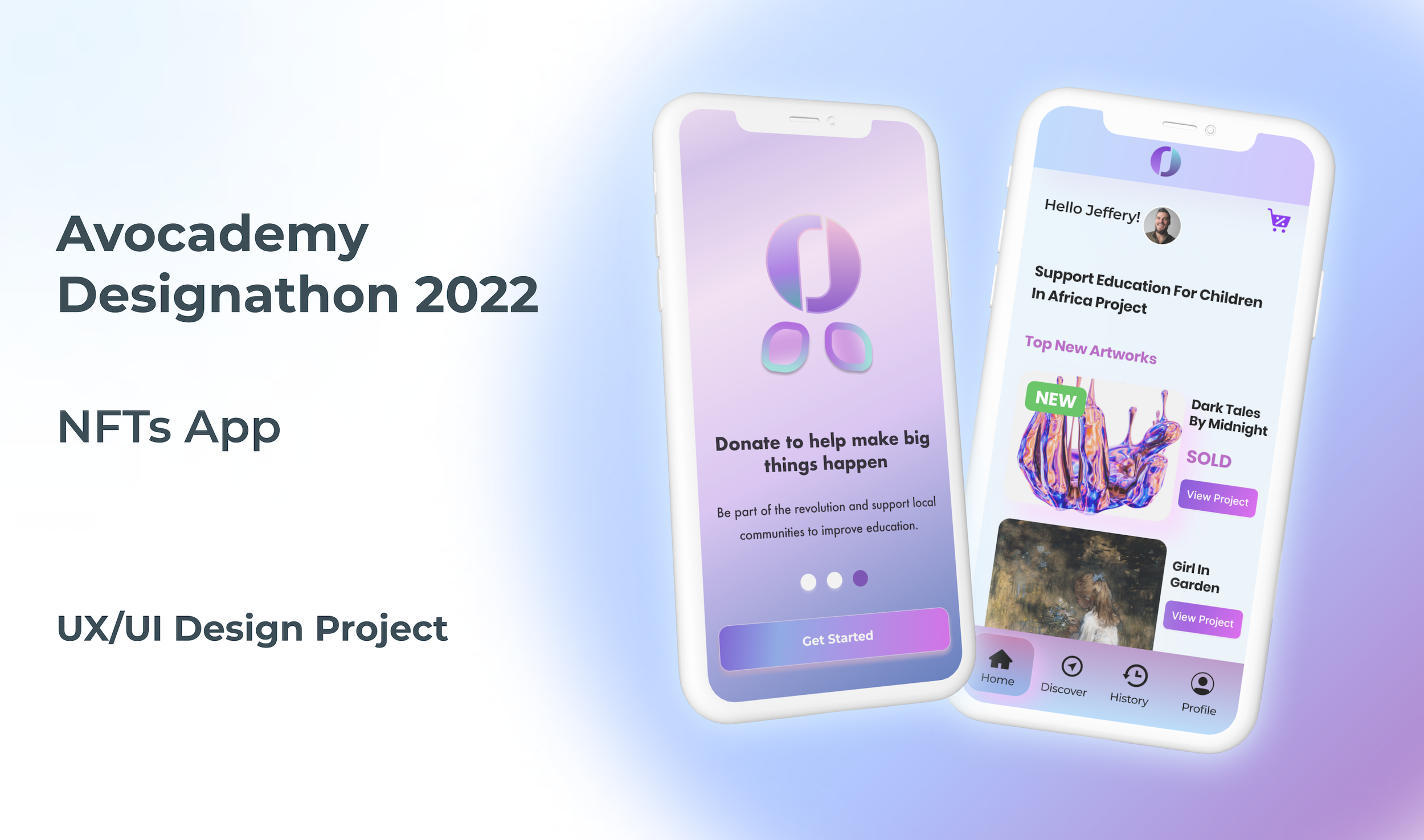 A mobile app for buying and collecting NFTs designed in collaboration with another UX/UI Designer during a design hackathon.